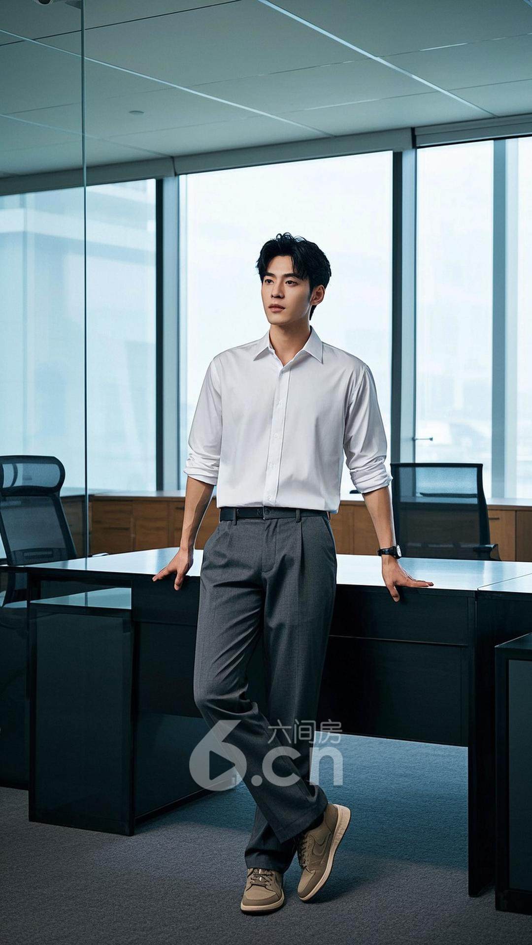 壁纸小能手下载无水印版一位年轻的中国男性,穿着休闲白衬衫与灰色长裤,搭配舒适的休闲鞋,站在宽敞办公室内的办公桌前,背景是现代简洁的办公环境与明亮的自然光,展现他舒适且时尚的办公室风格壁纸小能手共有0条评论